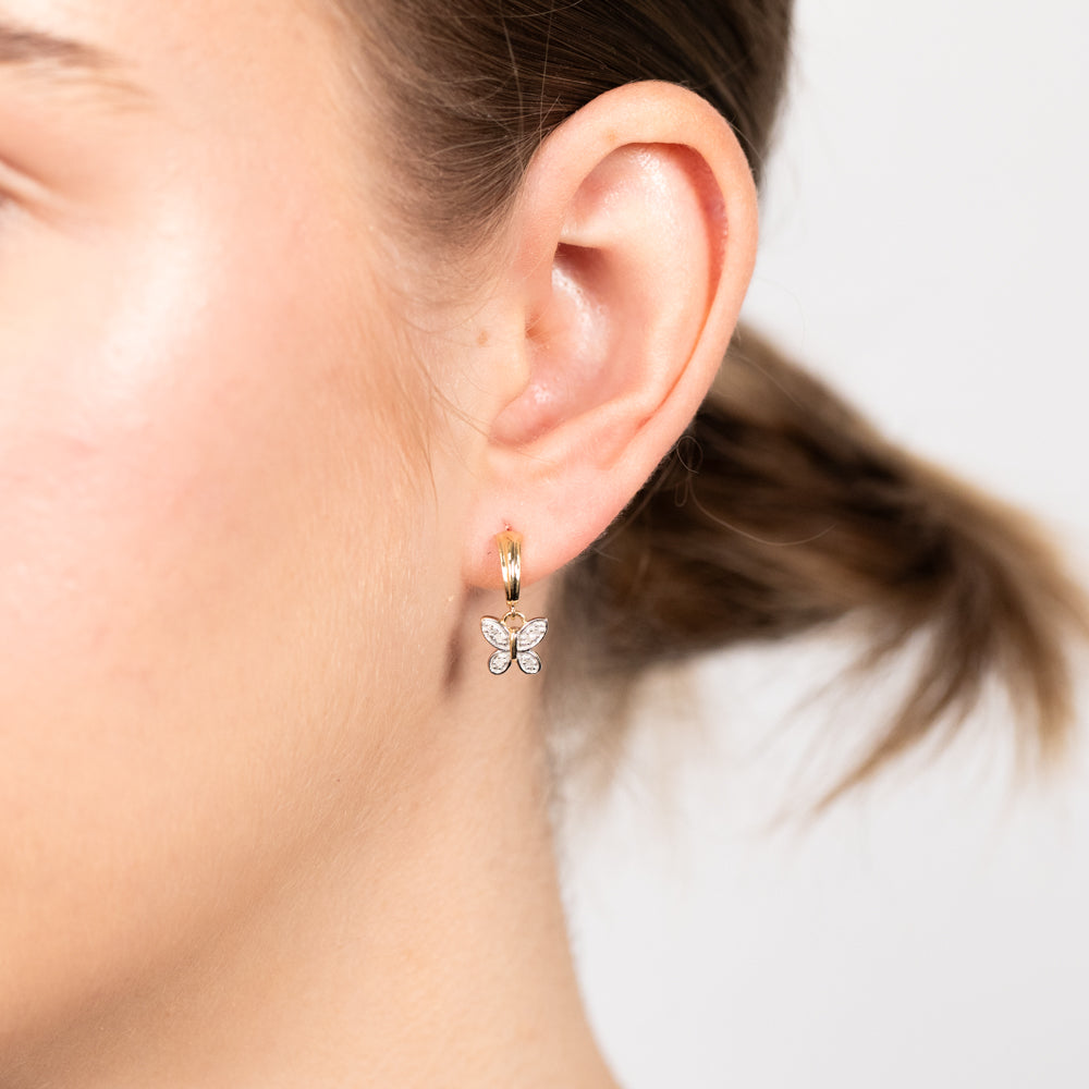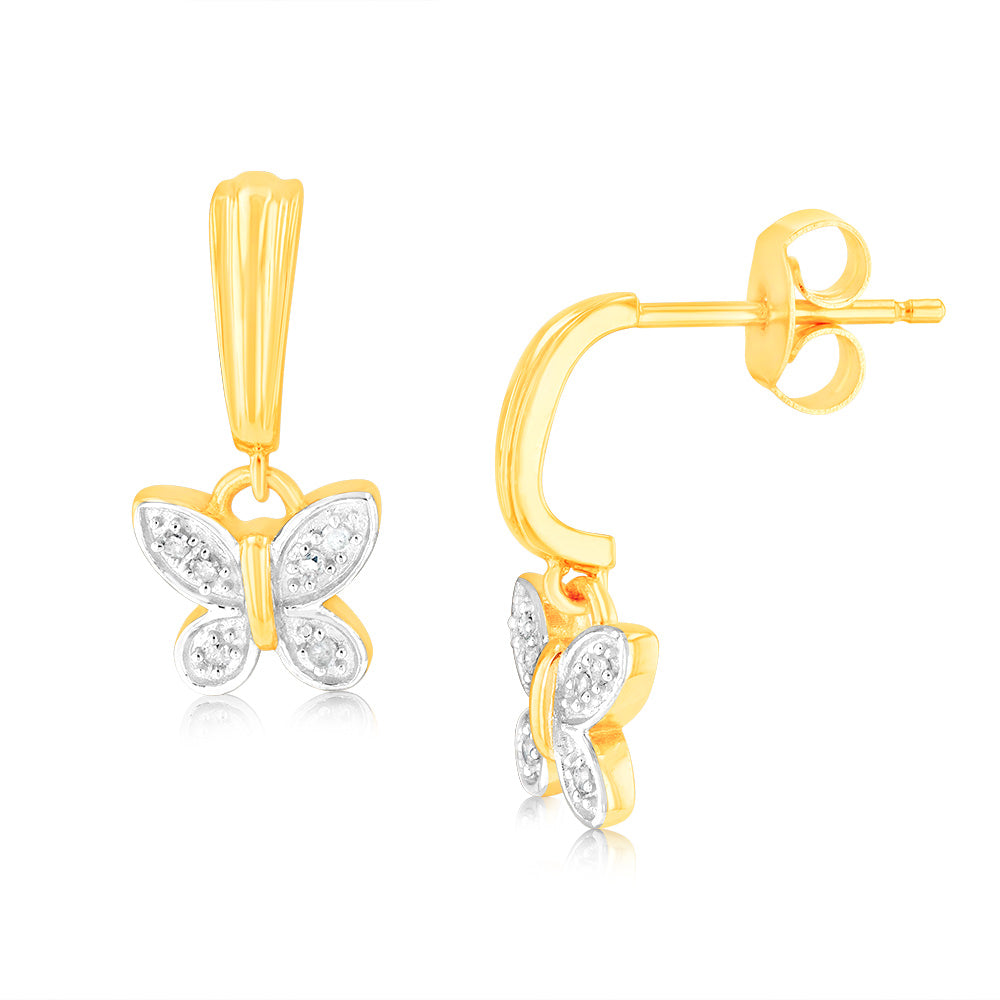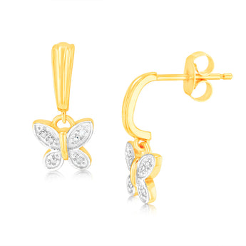 9ct Yellow Gold Butterfly Drop Earrings in 12 Diamonds
