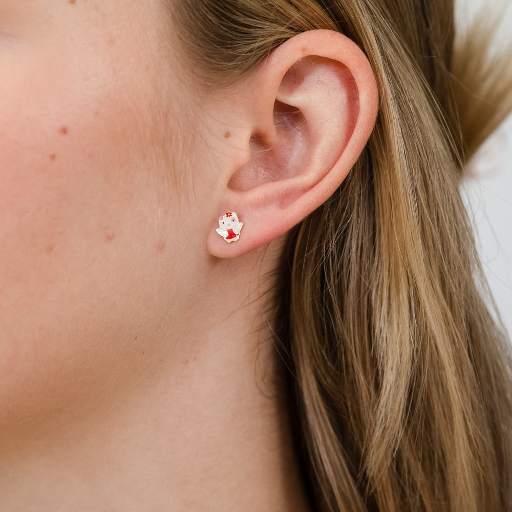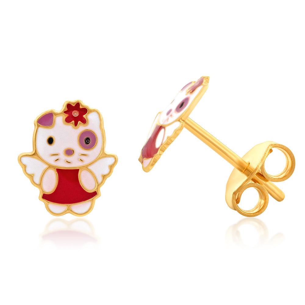 9ct Yellow Gold Cat With Flower Stud Earrings