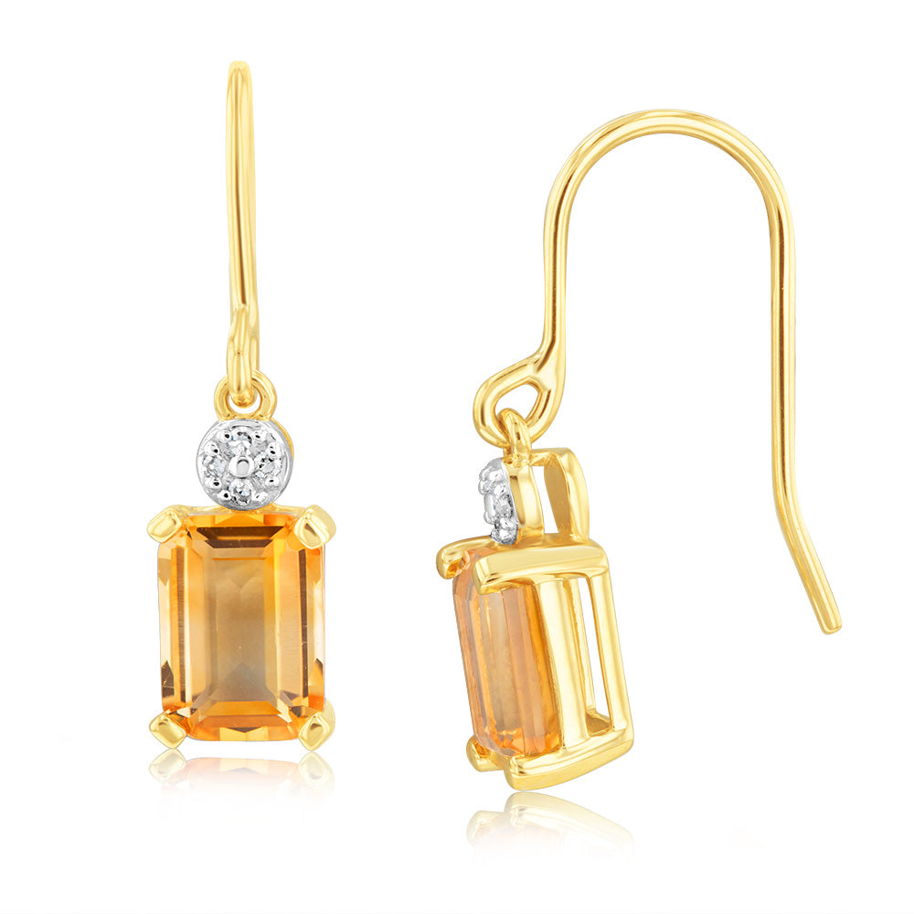 9ct Yellow Gold Citrine And Diamond Drop Earrings
