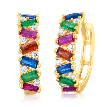 9ct Yellow Gold Coloured Cubic Zirconia Hoop Earrings