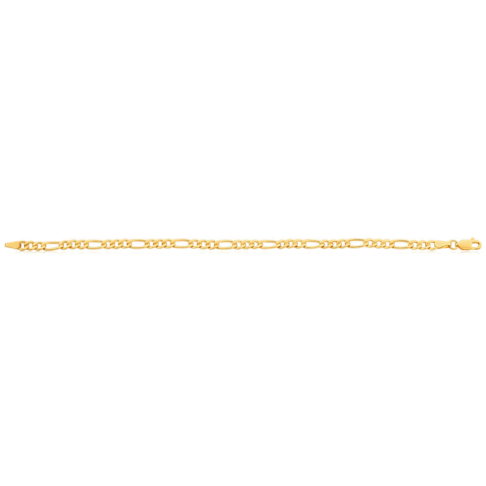 9ct Yellow Gold Coppefilled 19cm Figaro Bracelet 100Gauge