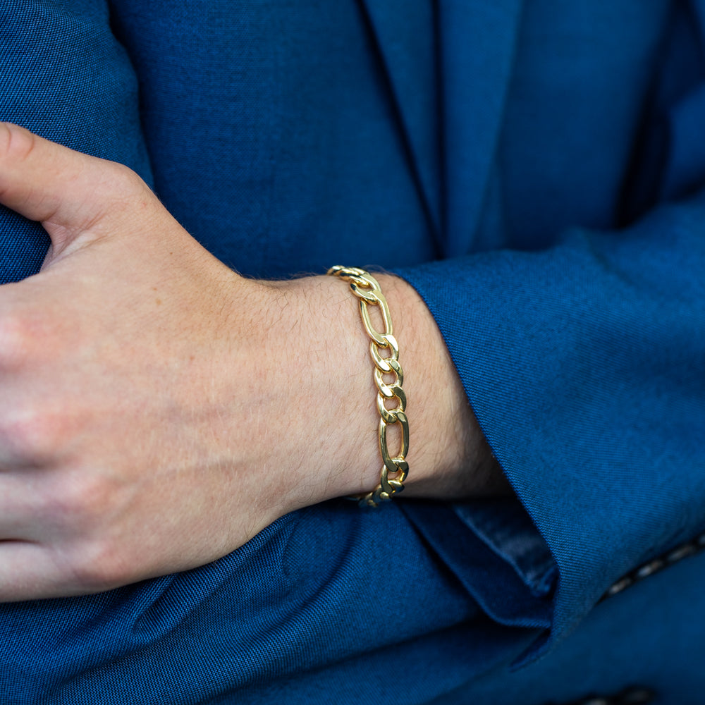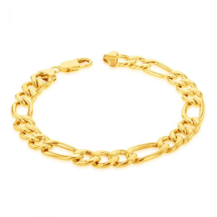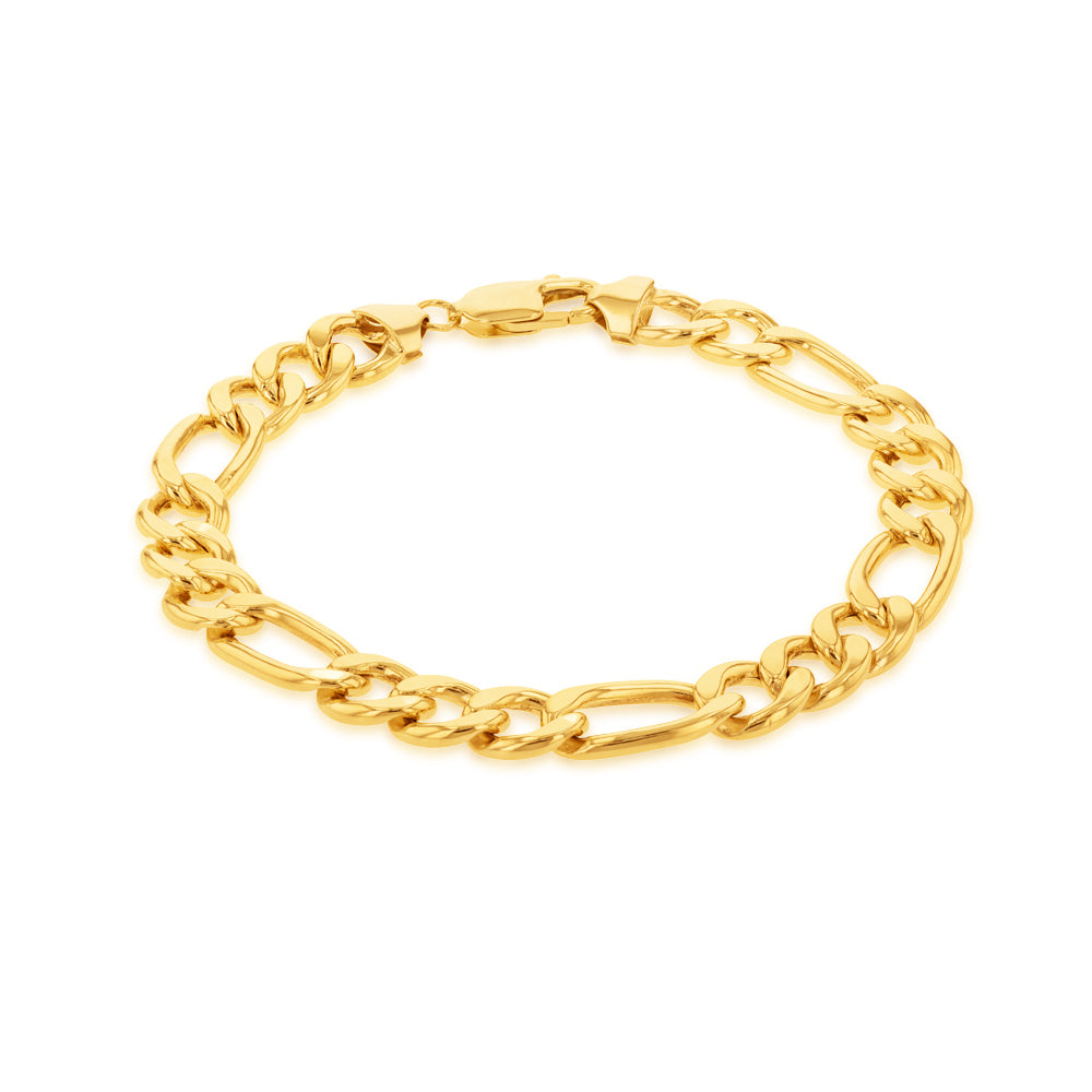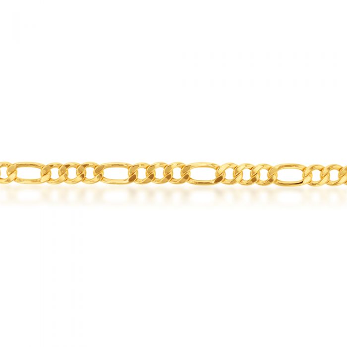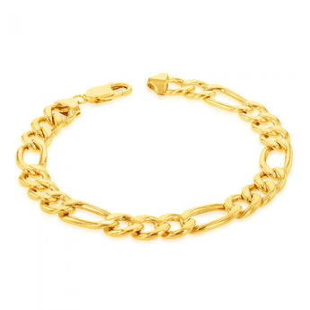 9ct Yellow Gold Copper Filled 3:1 Figaro 21cm Bracelet 230Gauge