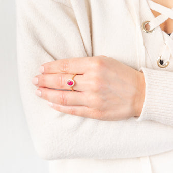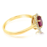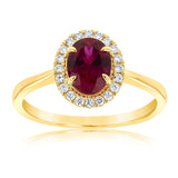 9ct Yellow Gold Created Oval Ruby And Diamond Halo Ring