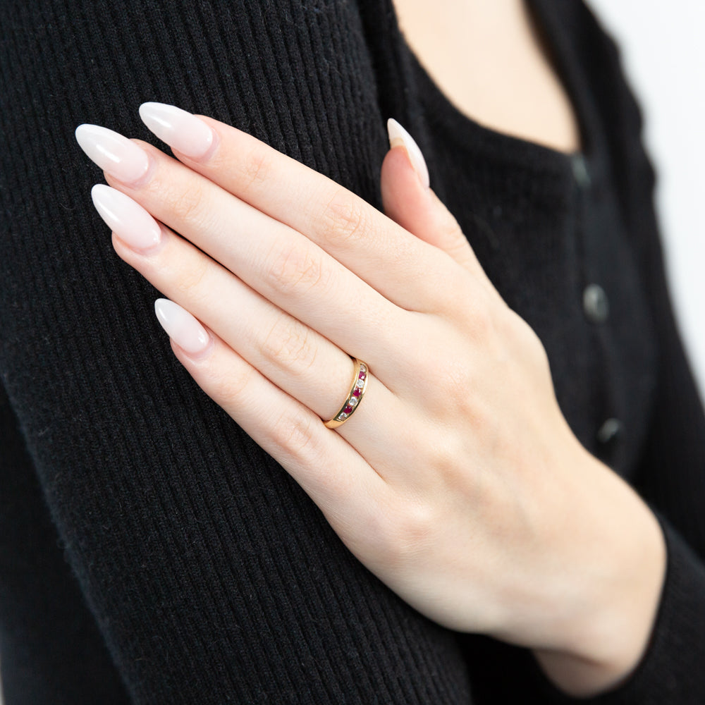 9ct Yellow Gold Created Ruby and Cubic Zirconia Channel Set Ring