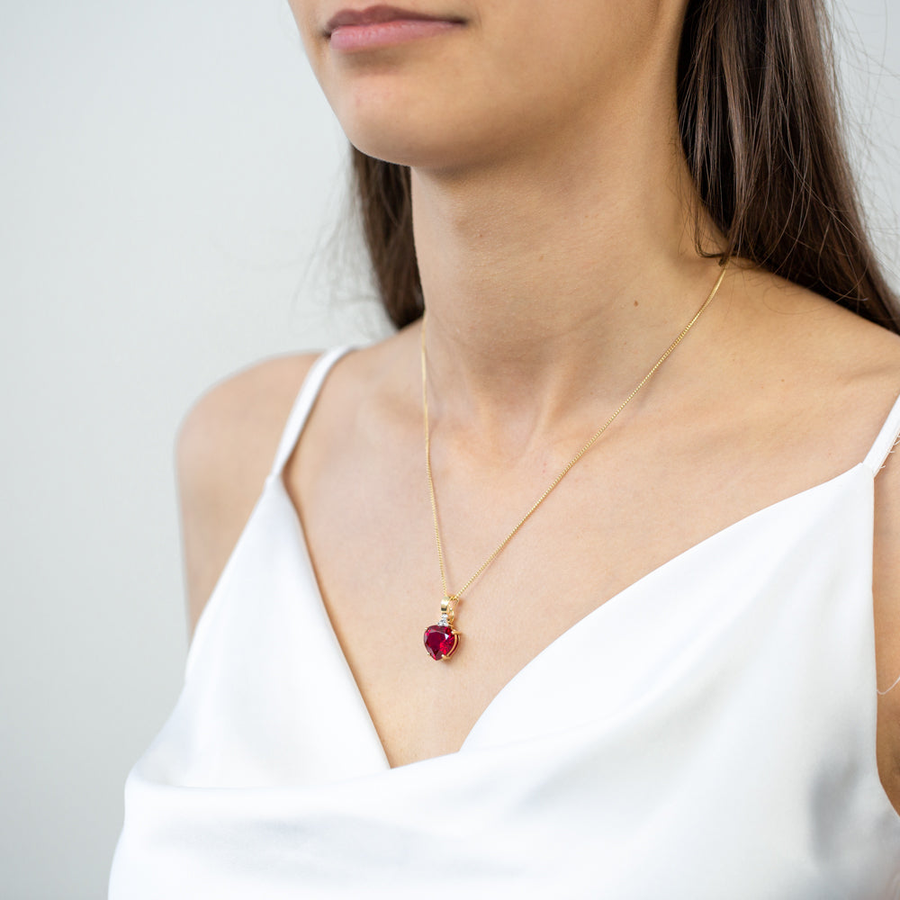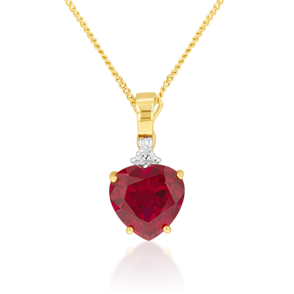 9ct Yellow Gold Created Ruby and Diamond Enhancer Pendant