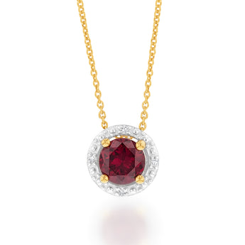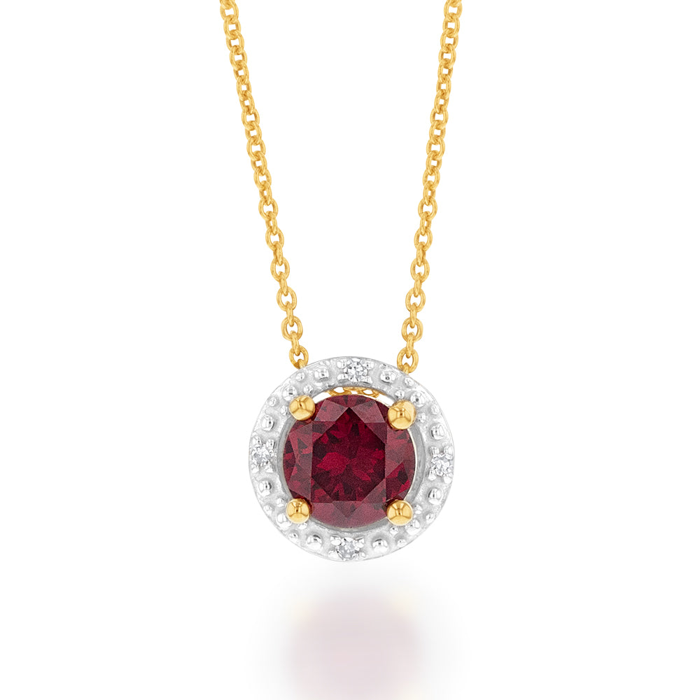 9ct Yellow Gold Created Ruby and Diamond Pendant on 45cm Chain