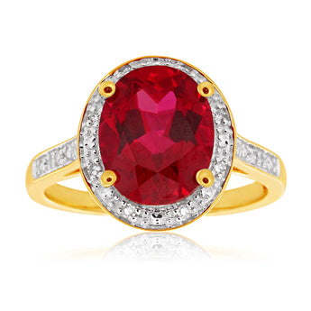 9ct Yellow Gold Created Ruby and Diamond Ring