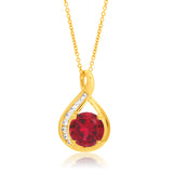 9ct Yellow Gold Created Ruby and Zirconia Pendant On 45cm Chain