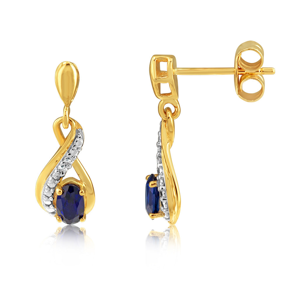 9ct Yellow Gold Created Sapphire And Diamond Infinity Earrings