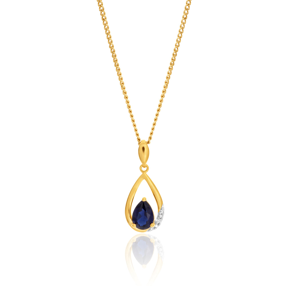 9ct Yellow Gold Created Sapphire and Diamond Pendant