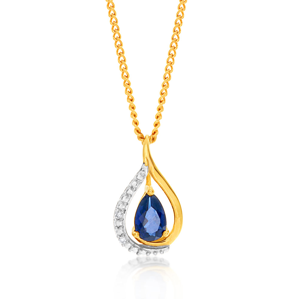9ct Yellow Gold Created Sapphire and Diamond Pendant