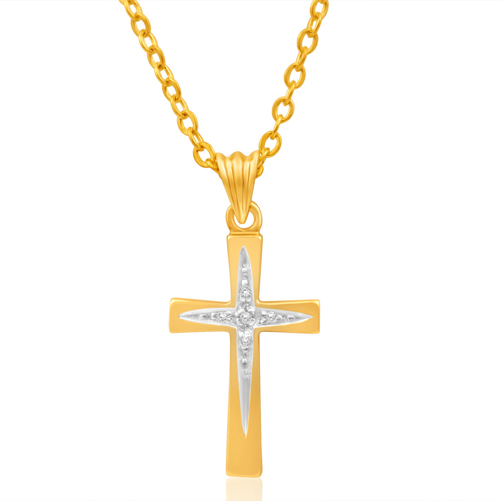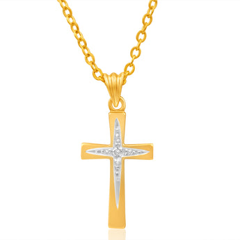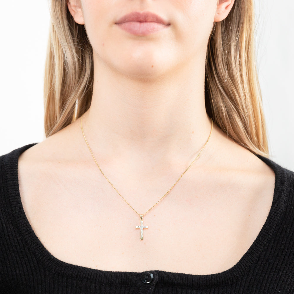 9ct Yellow Gold Cross Diamond Pendant
