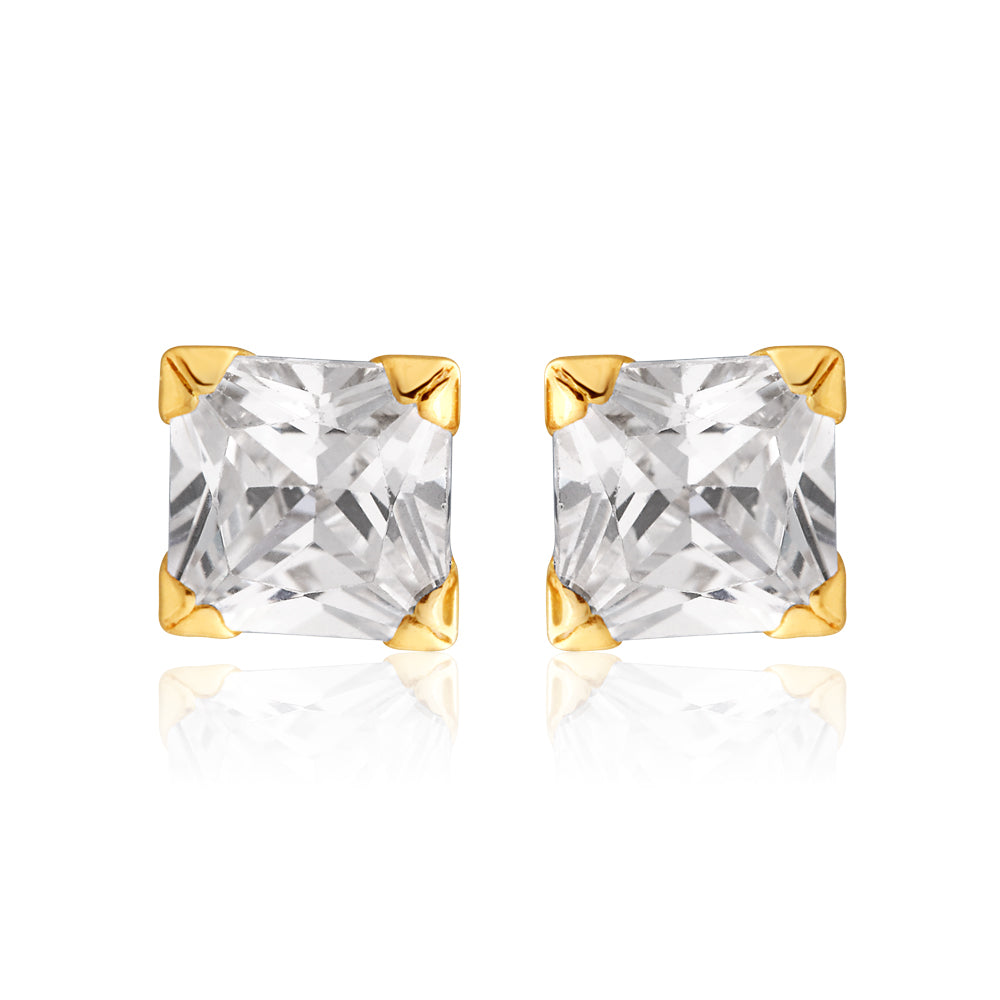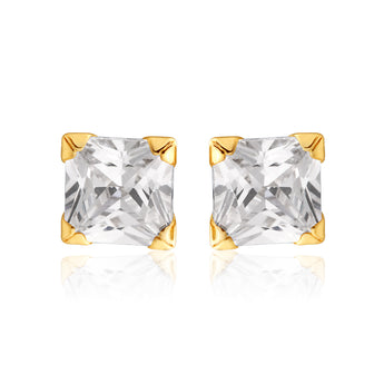 9ct Yellow Gold Cubic Zirconia 4mm Princess Stud Earrings