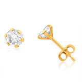 9ct Yellow Gold Cubic Zirconia 5mm 6 Claw Stud Earrings