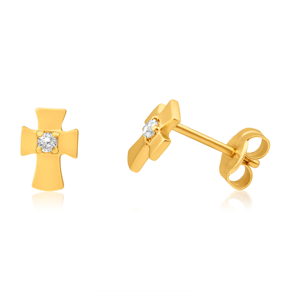 9ct Yellow Gold Cubic Zirconia 6mm Cross Stud Earrings