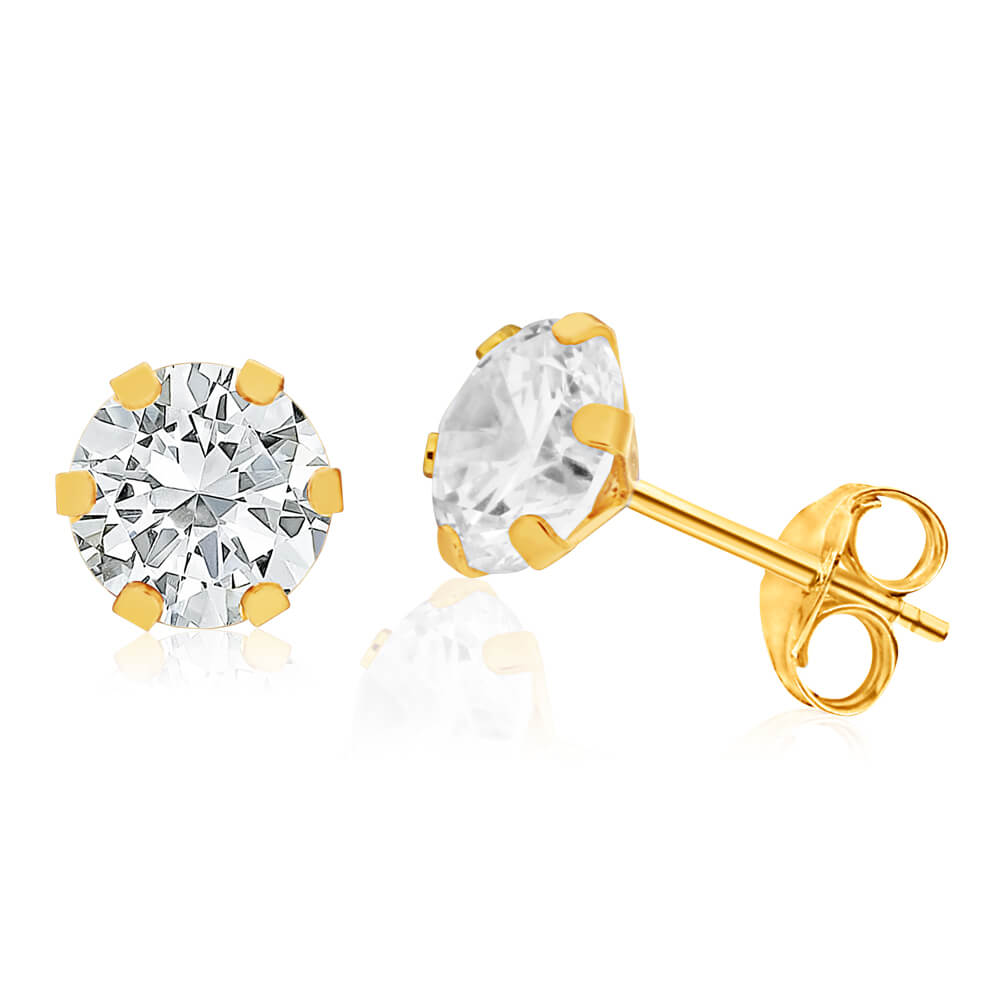 9ct Yellow Gold Cubic Zirconia 6mm Round Stud Earrings