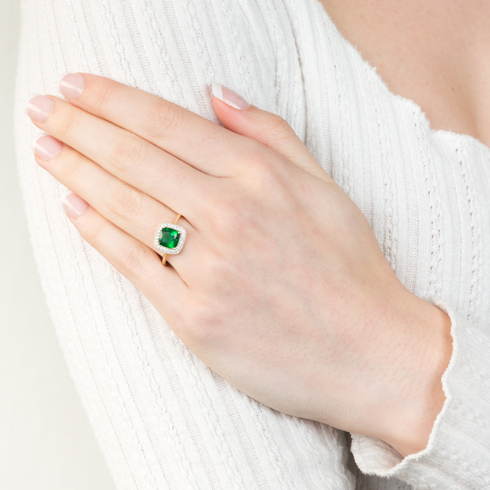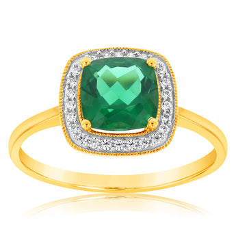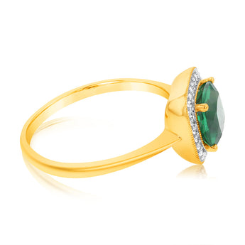 9ct Yellow Gold Cubic Zirconia And Glass Filled Emerald Ring