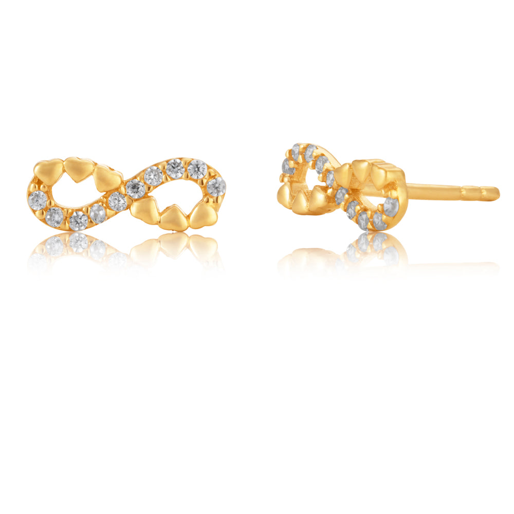9ct Yellow Gold Cubic Zirconia and Heart Embossed Infinity Stud Earrings
