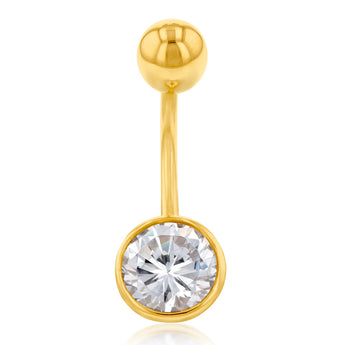 9ct Yellow Gold Cubic Zirconia Bezel Belly Bar