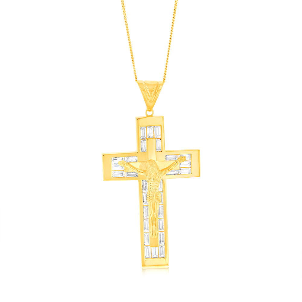 9ct Yellow Gold Cubic Zirconia Cross Pendant
