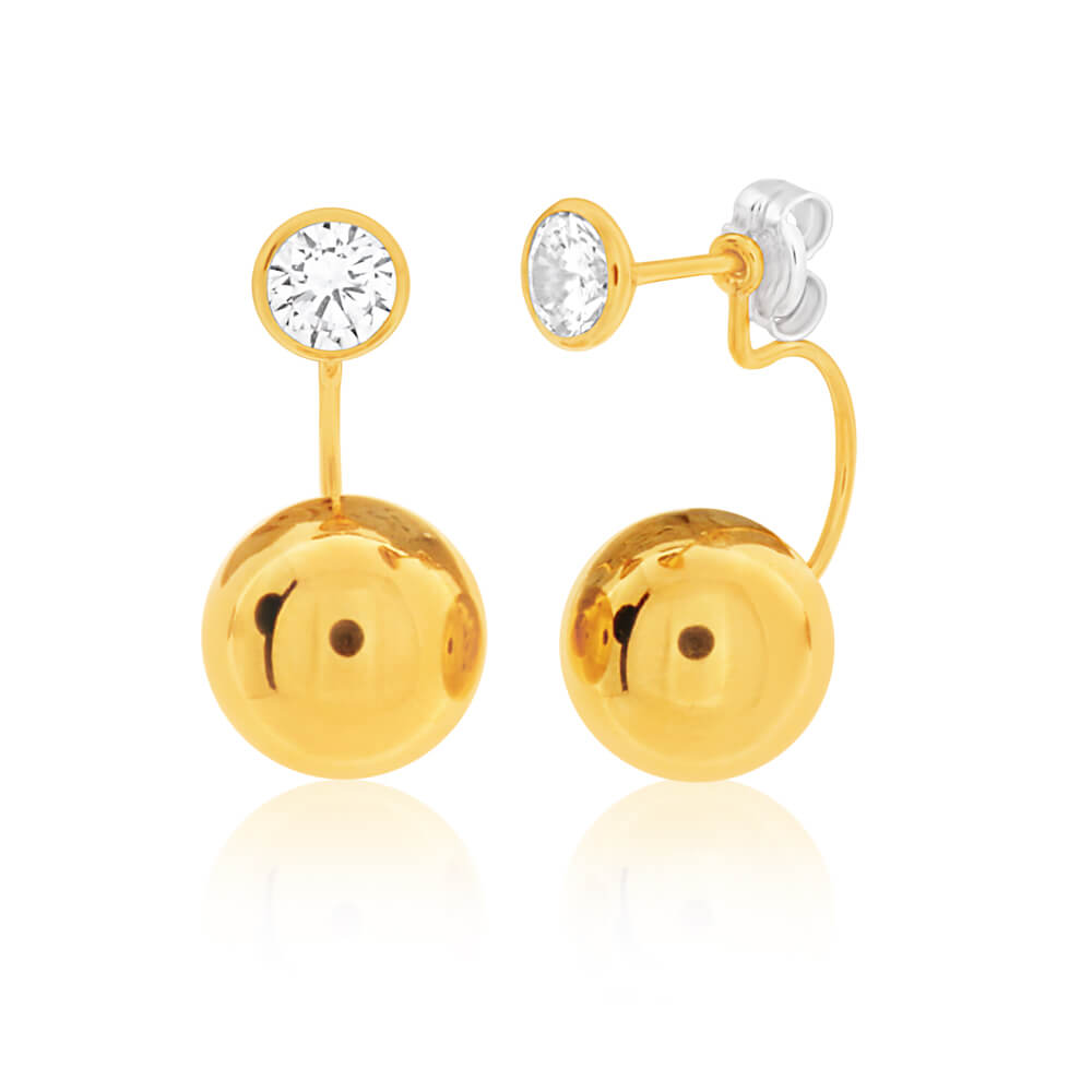 9ct Yellow Gold Cubic Zirconia Gold Ball Stud Earrings