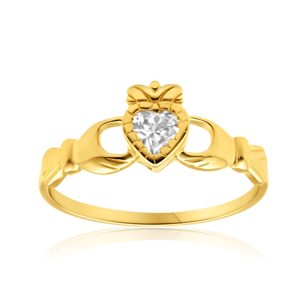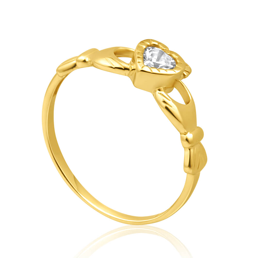 9ct Yellow Gold Cubic Zirconia Heart Claddagh Ring