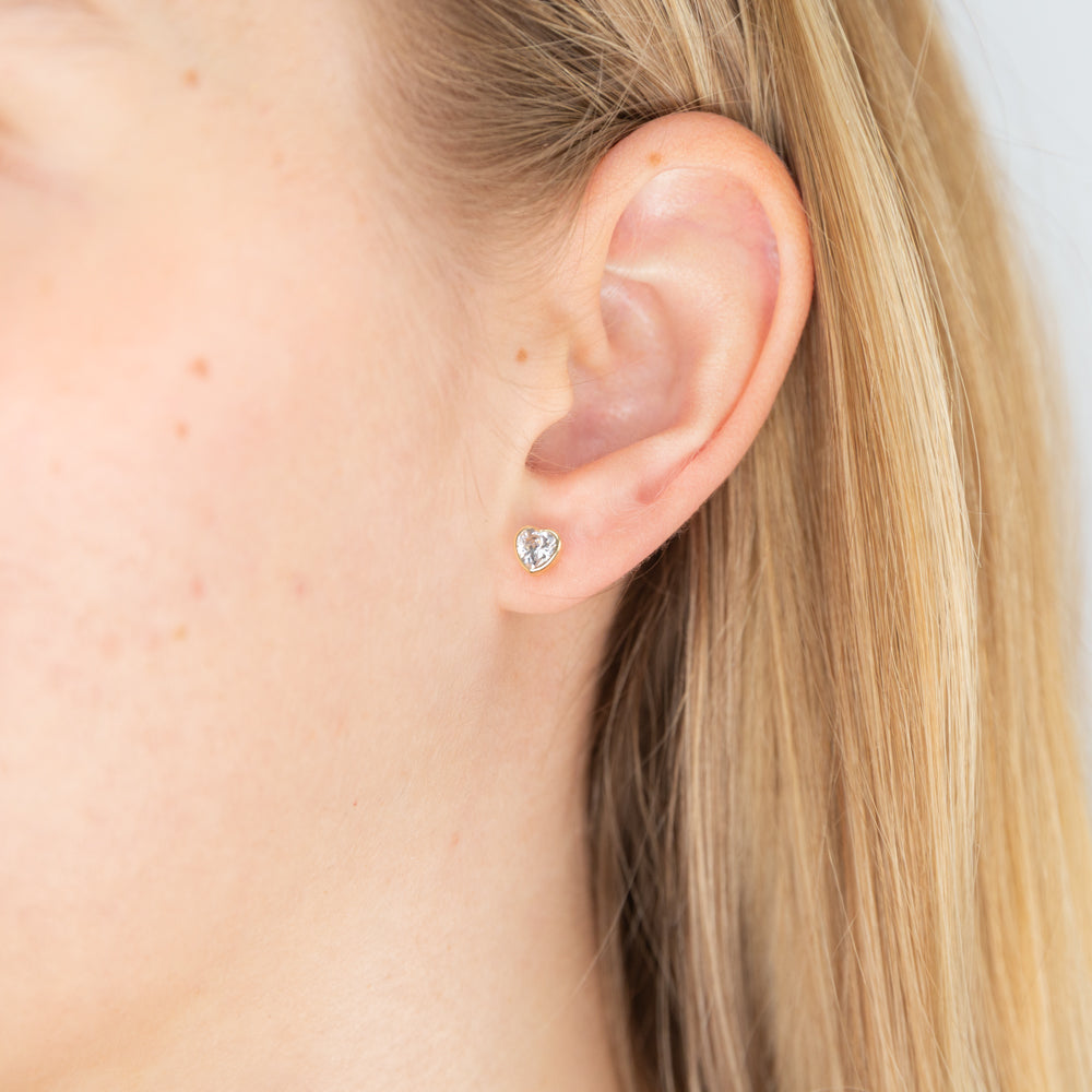 An everyday staple, we love these sparkling cubic zirconia studs. Crafted in 9ct yellow gold in a sweet heart shape, the earrings are a must-have.