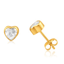 9ct Yellow Gold Cubic Zirconia Heart Shaped 5mm Stud Earrings
