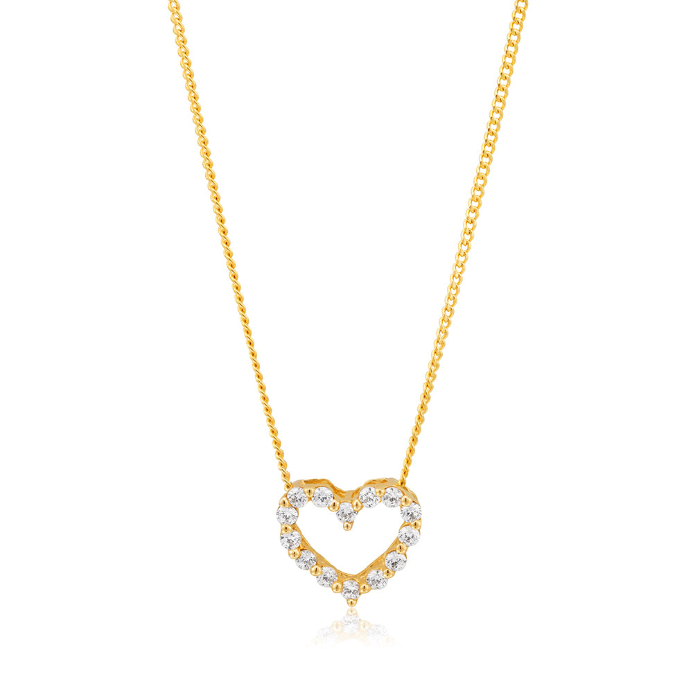 9ct Yellow Gold Cubic Zirconia Open Heart Pendant