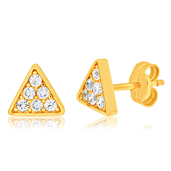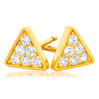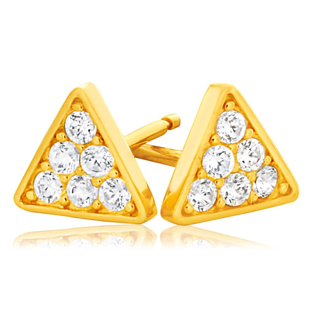 9ct Yellow Gold Cubic Zirconia Pyramid Stud Earrings