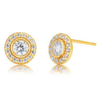 9ct Yellow Gold Cubic Zirconia Round Halo Stud Earrings