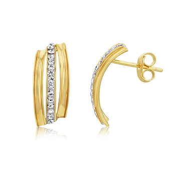 9ct Yellow Gold Cubic Zirconia Triple Groove Band Stud Earrings