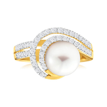9ct Yellow Gold Cultured Pearl and Diamond Swirl Ring