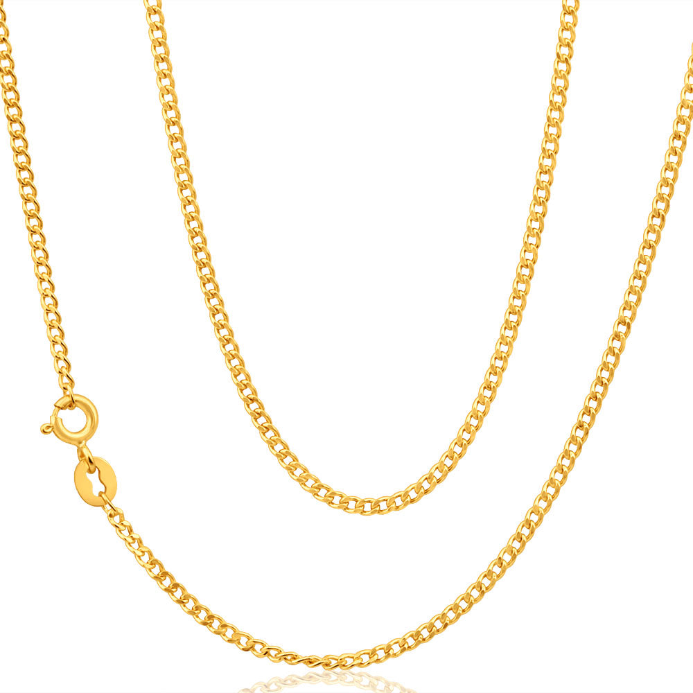 9ct Yellow Gold Curb Chain in 45cm 50 Gauge