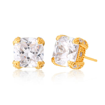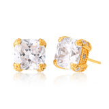 9ct Yellow Gold Cushion Cut 7mm Studs with Side Stones