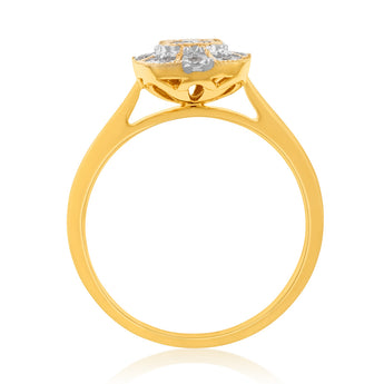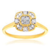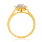 9ct Yellow Gold Cushion Shape Cluster Diamond Ring