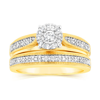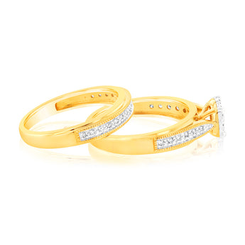 9ct Yellow Gold Cushion Shaped Bridal Ring Set in 0.30 Carat Natural Diamonds