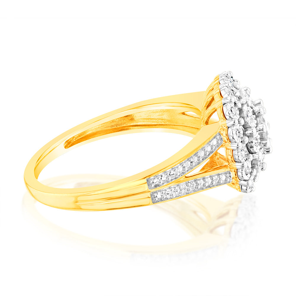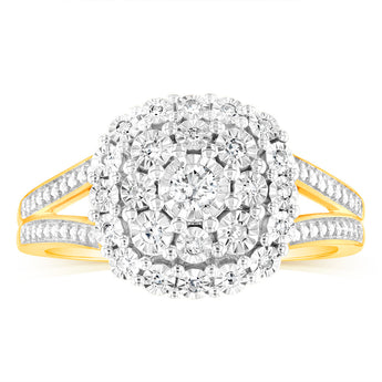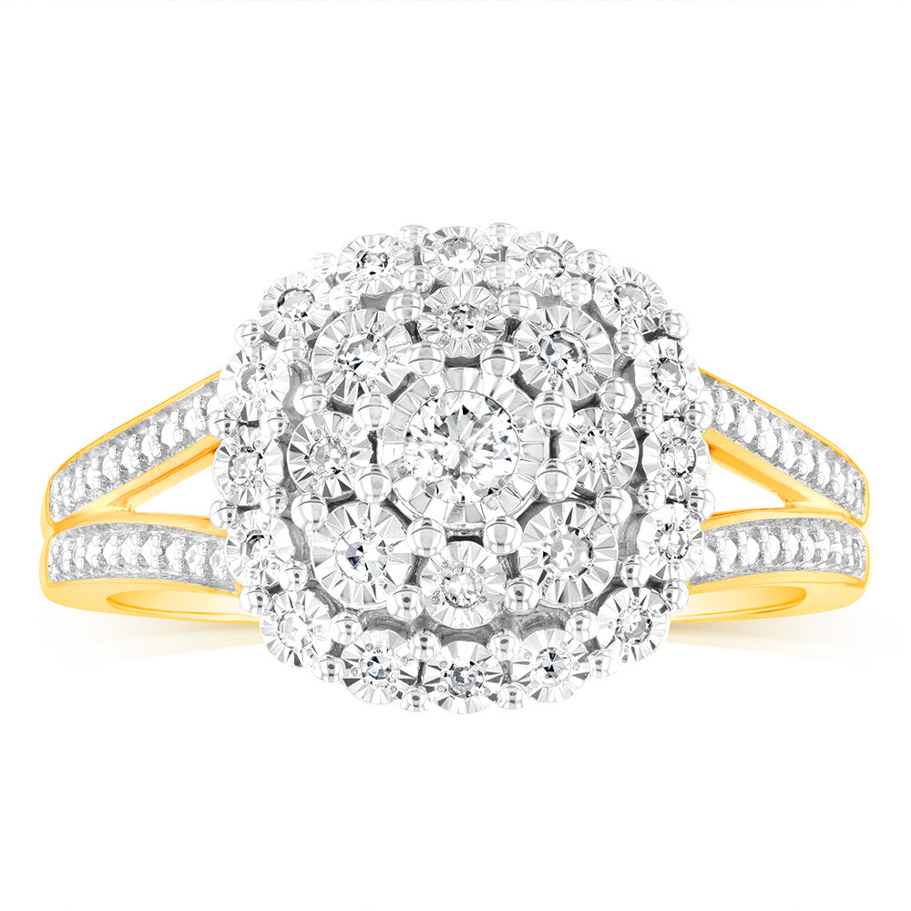 9ct Yellow Gold Cushion Shaped Ring in 1/5 Carat Natural Diamonds