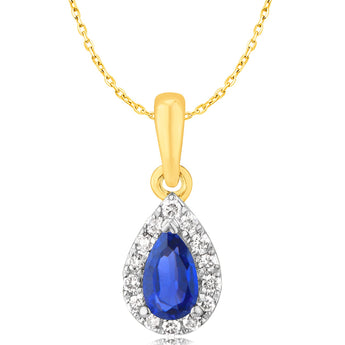 9ct Yellow Gold Diamond And Created Pear Sapphire Pendant