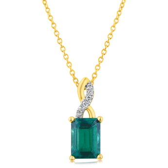 9ct Yellow Gold Diamond And Created Rectangle Pendant With Chain