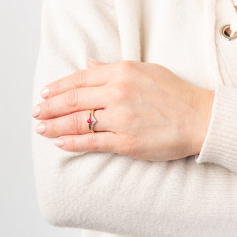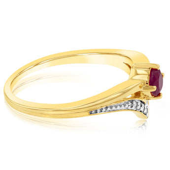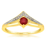 9ct Yellow Gold Diamond And Created Round Ruby Ring