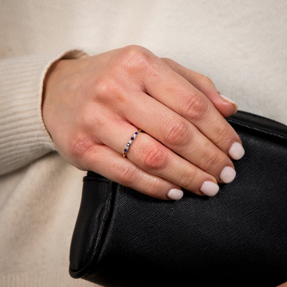 9ct Yellow Gold Diamond And Created Round Sapphire Ring