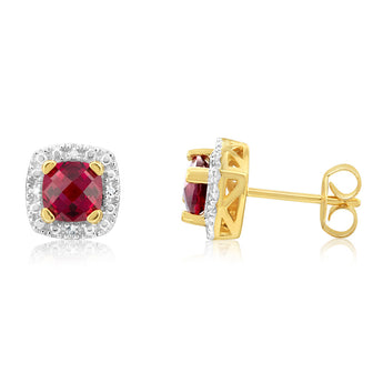 9ct Yellow Gold Diamond And Created Ruby Stud Earrings