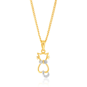 9ct Yellow Gold Diamond Cat Pendant with 7 Brilliant Cut Diamonds
