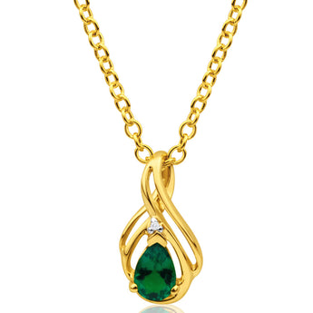 9ct Yellow Gold Diamond + Created Emerald Pendant