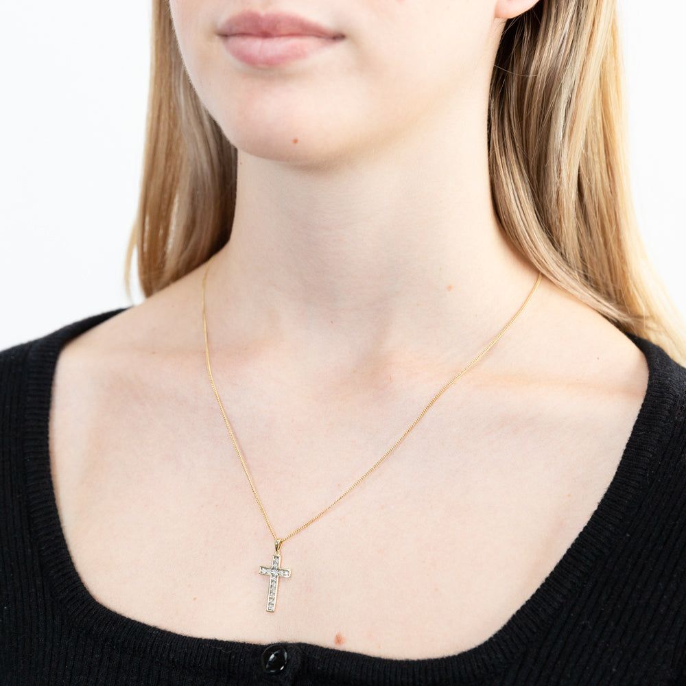 9ct Yellow Gold Diamond Cross Pendant