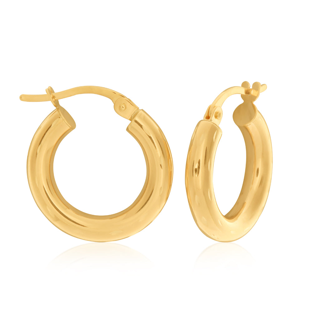 9ct Yellow Gold Diamond Cut 10MM Hoop Earrings