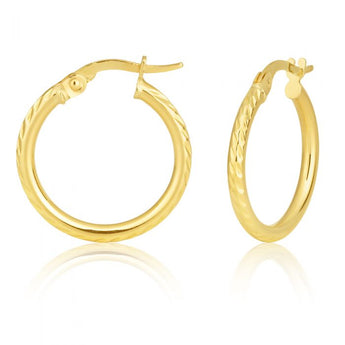 9ct Yellow Gold Diamond Cut 15mm Hoop Earrings