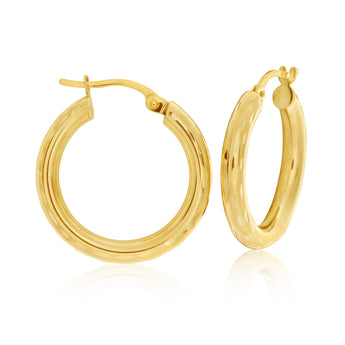 9ct Yellow Gold Diamond Cut 15MM Hoop Earrings