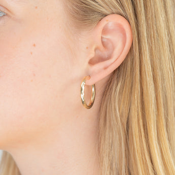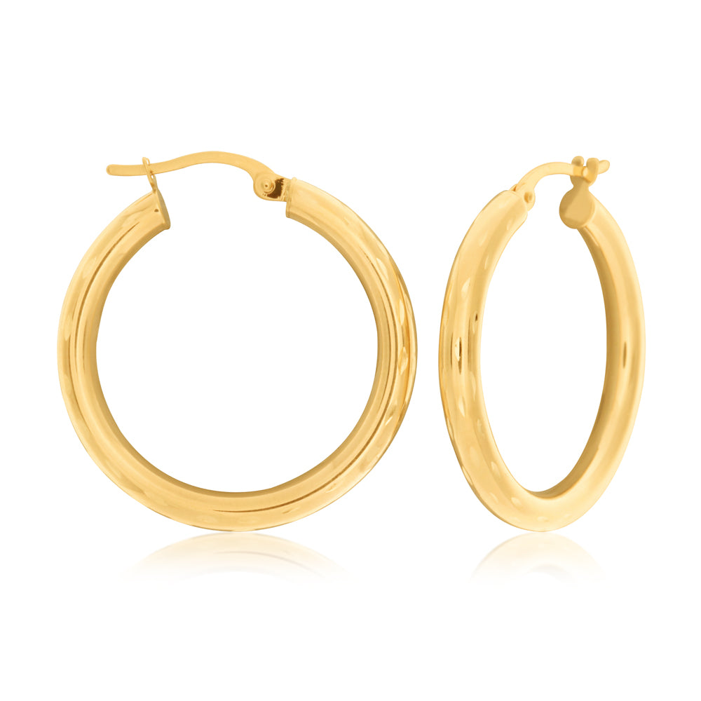 9ct Yellow Gold Diamond Cut 20mm Hoop Earrings